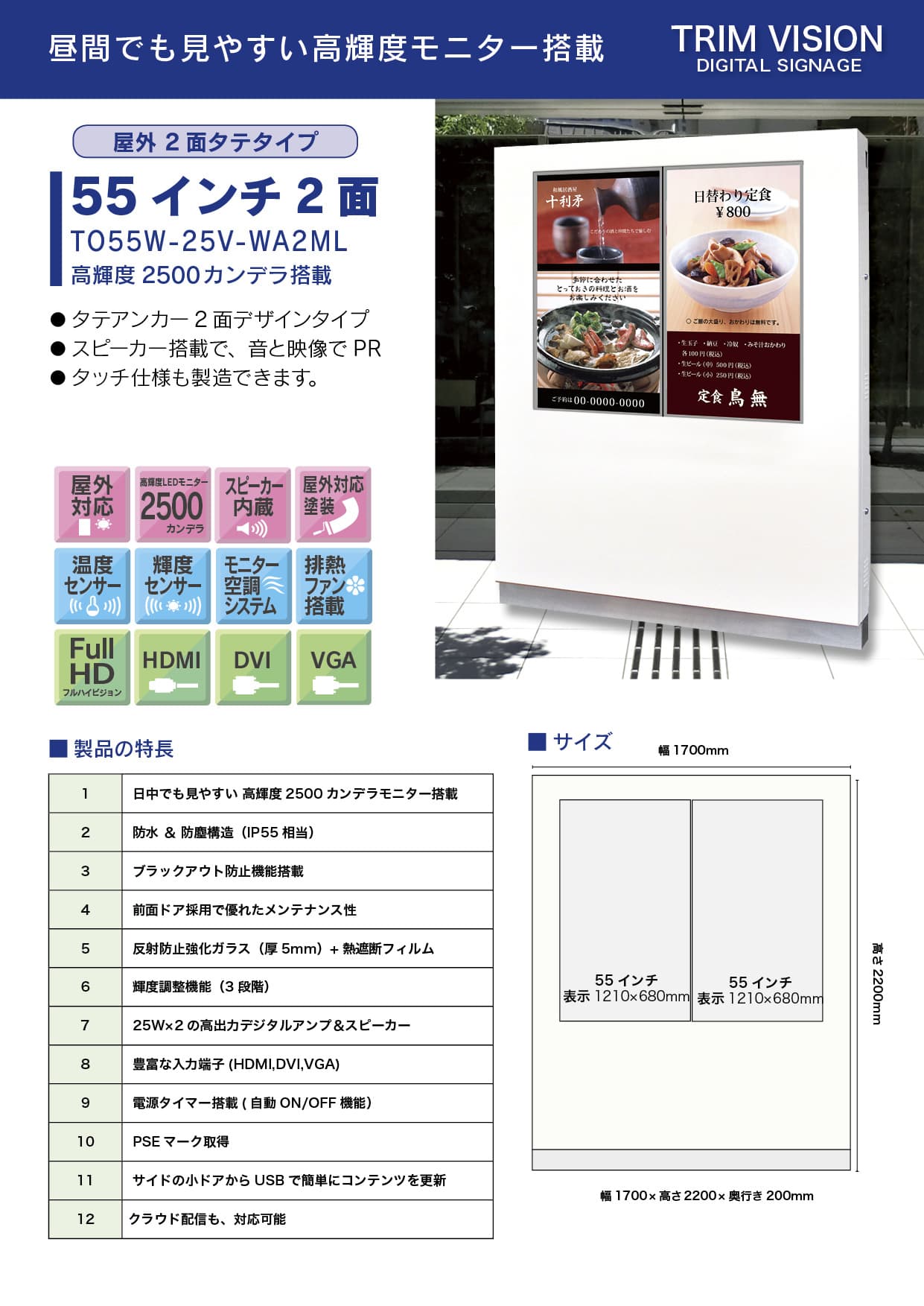 | 外形寸法 | 1700(幅)×2100(高さ)×200(奥行き)mm |
